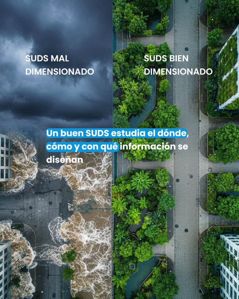 Sin esta información localizada, el diseño pierde precisión. Un SUDS mal dimensionado o mal ubicado puede ser ineficaz, insuficiente o incluso contraproducente. Por ello, surge la siguiente pregunta…