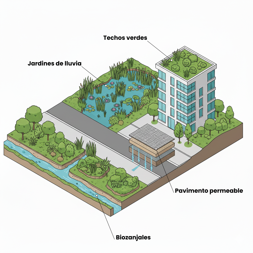 La efectividad de estos sistemas está ampliamente documentada. Ciudades europeas y latinoamericanas han demostrado que los SUDS mejoran la resiliencia urbana, reducen riesgos de inundación y aportan co-beneficios térmicos y ecosistémicos.